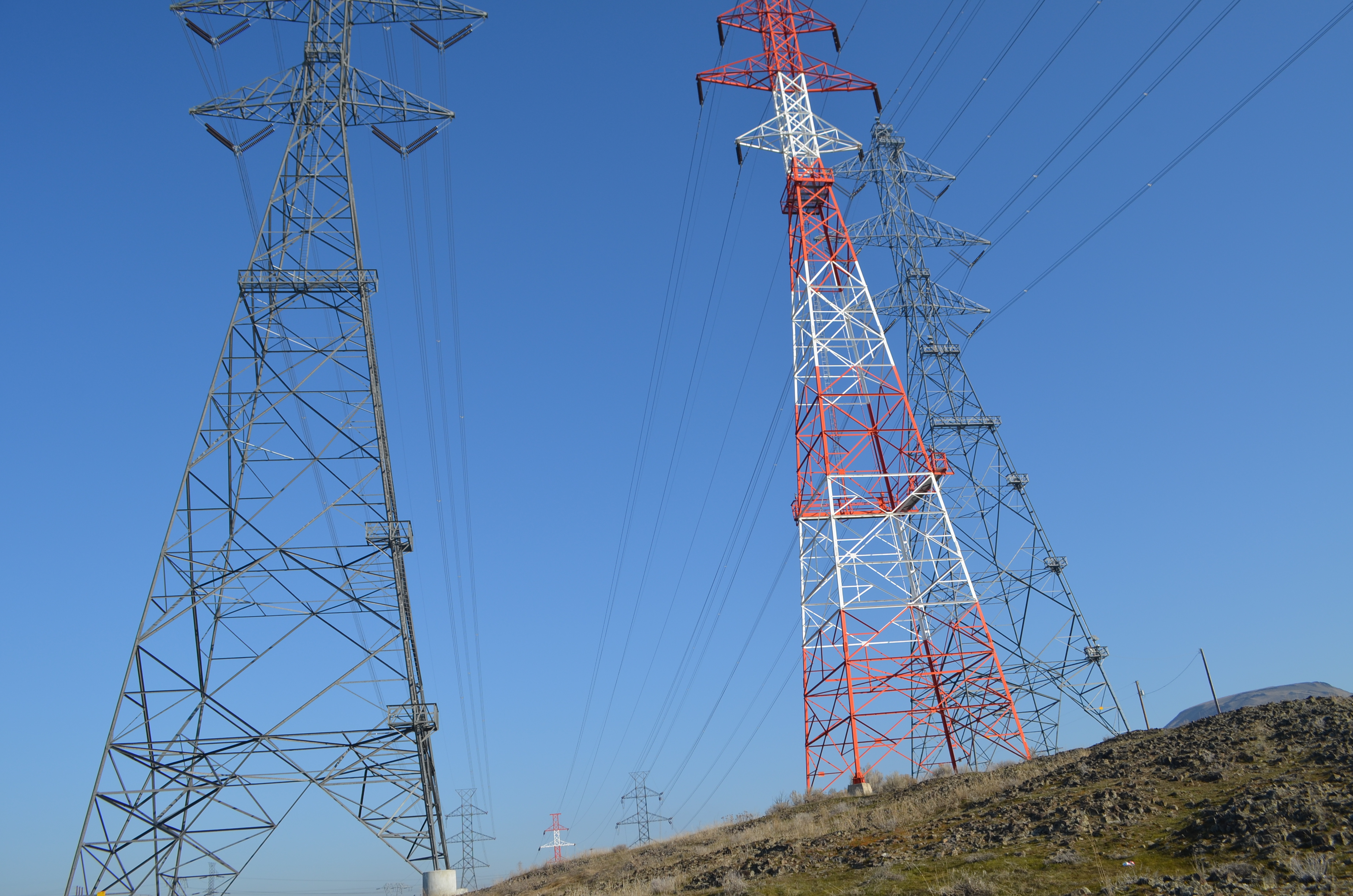 The trail goes underneath towering power lines.