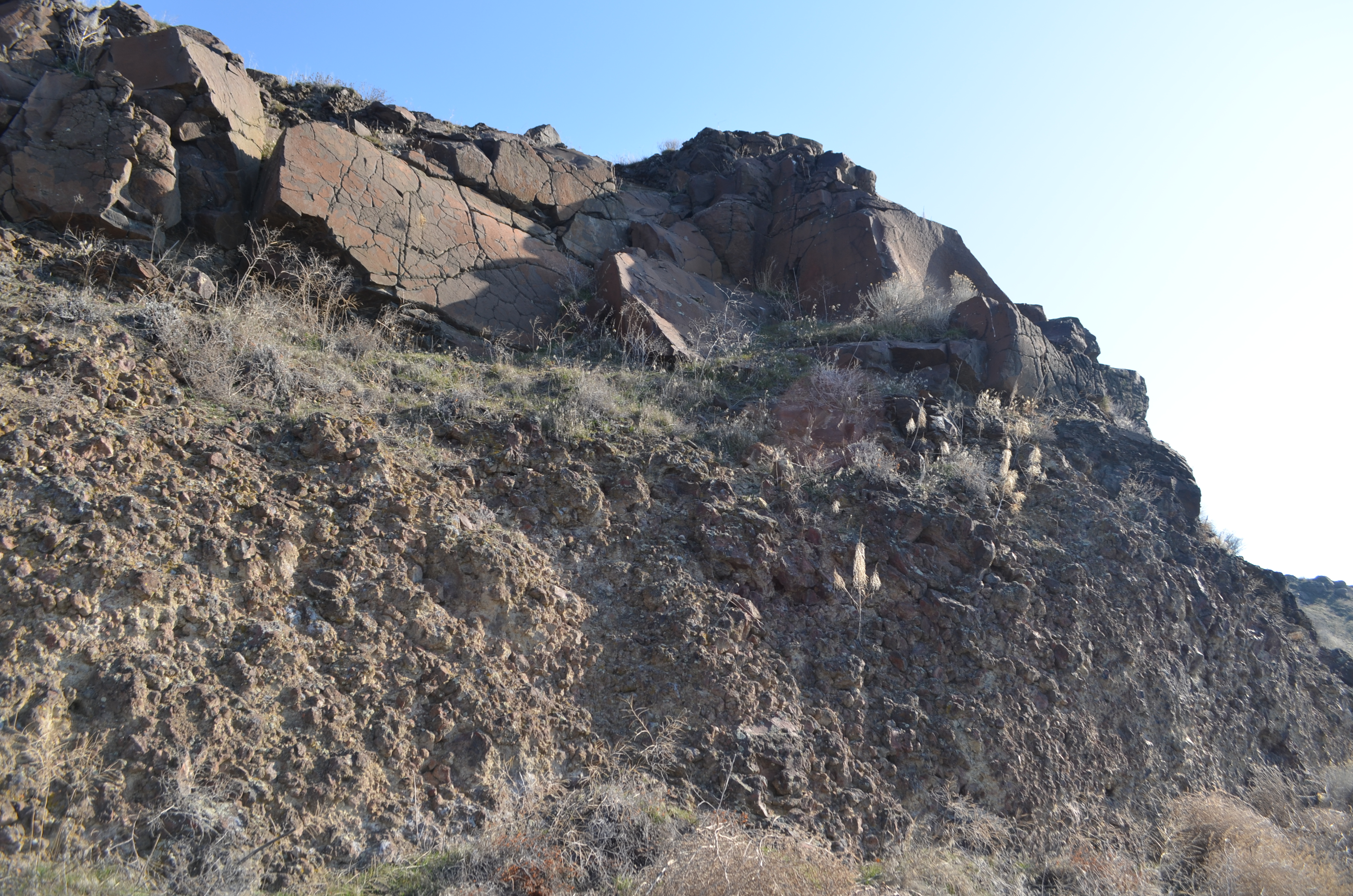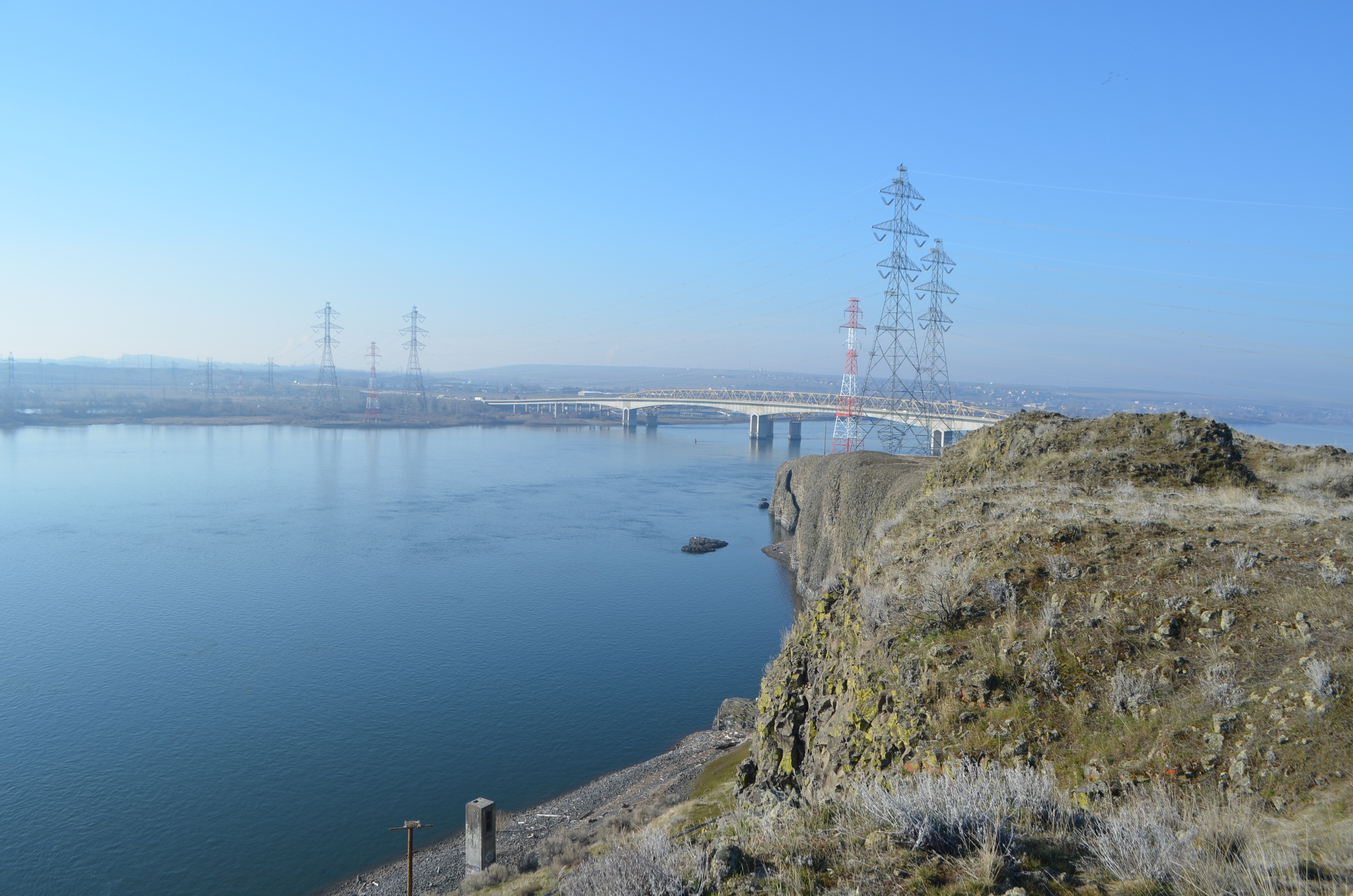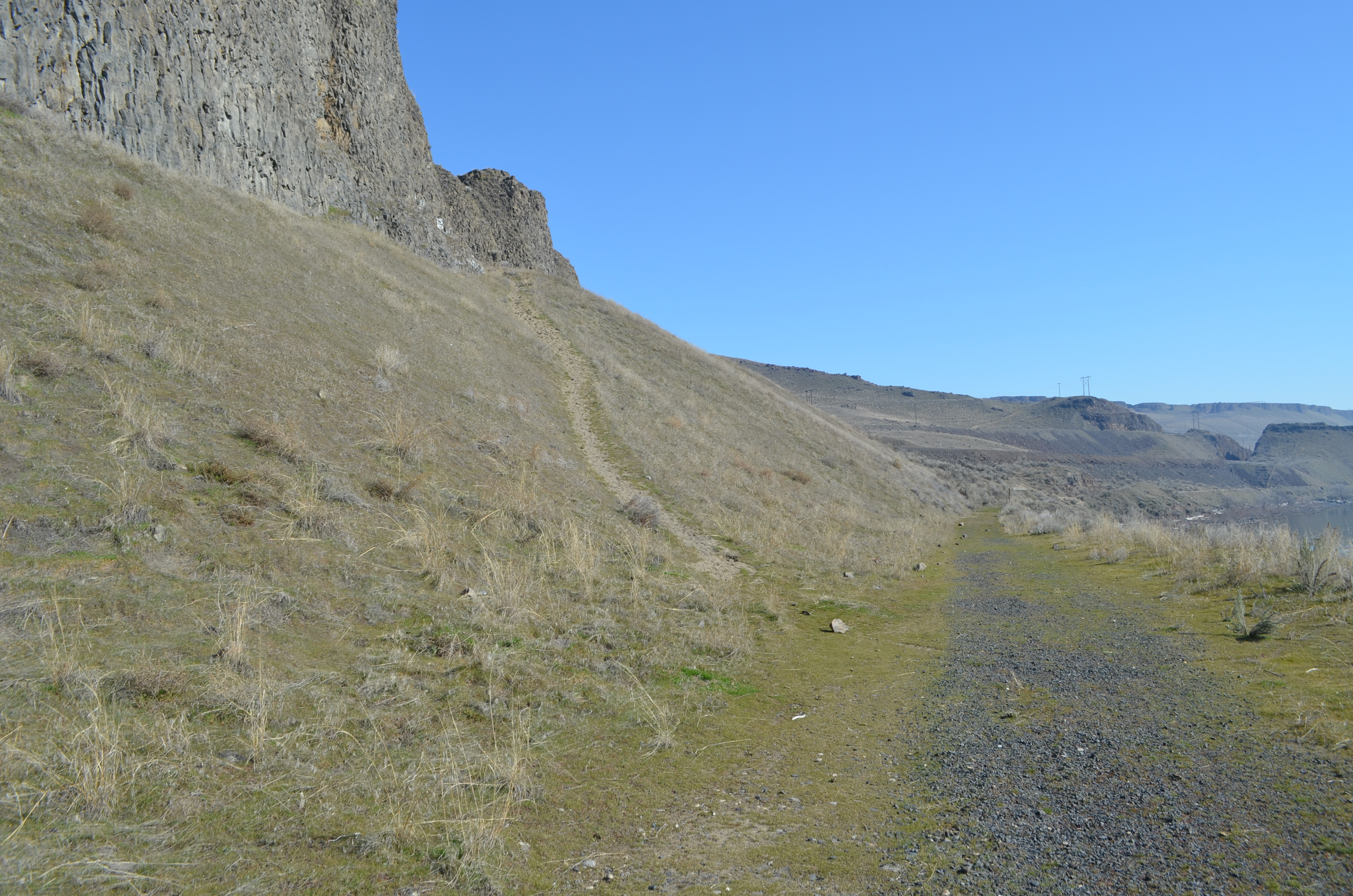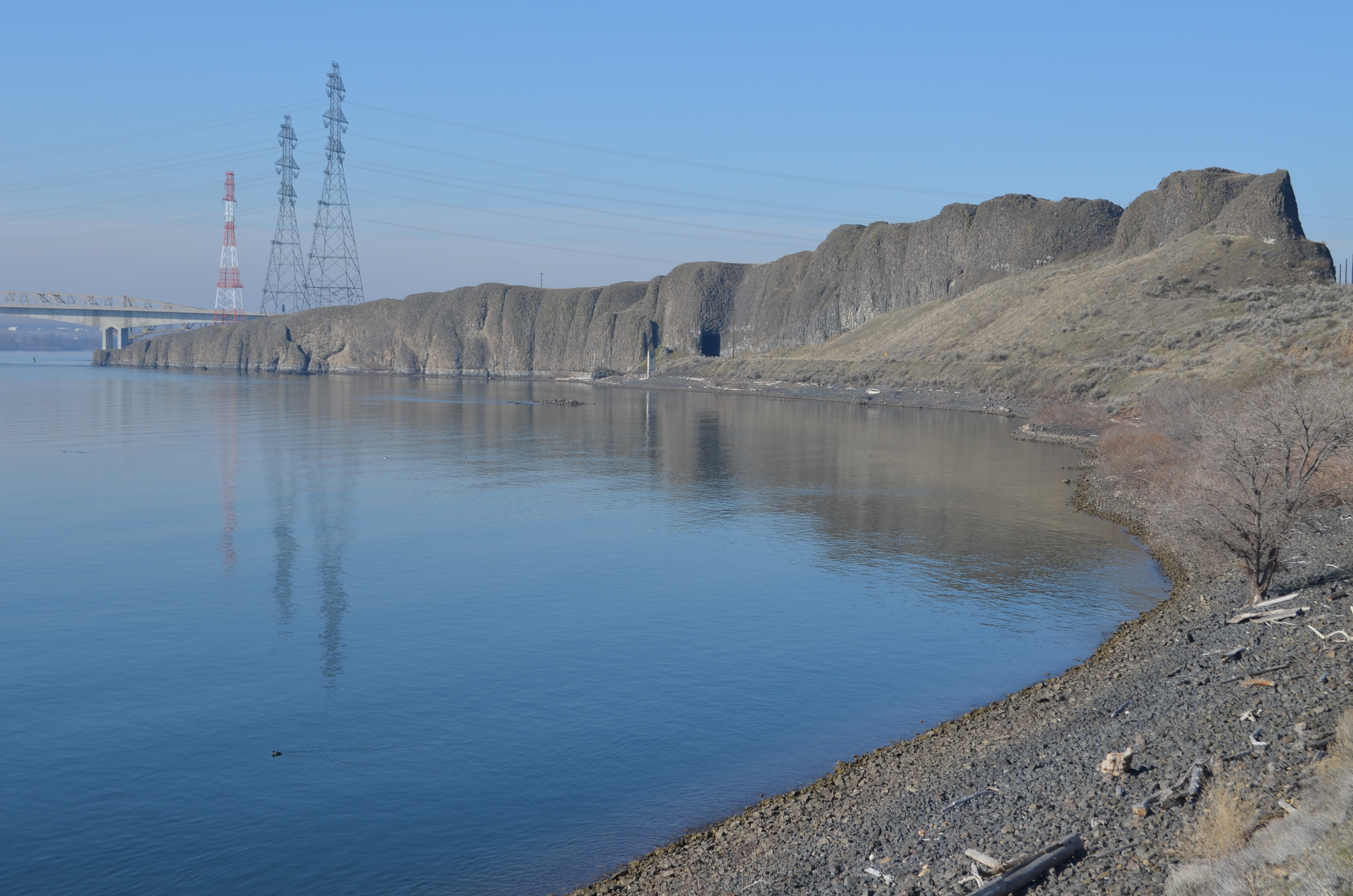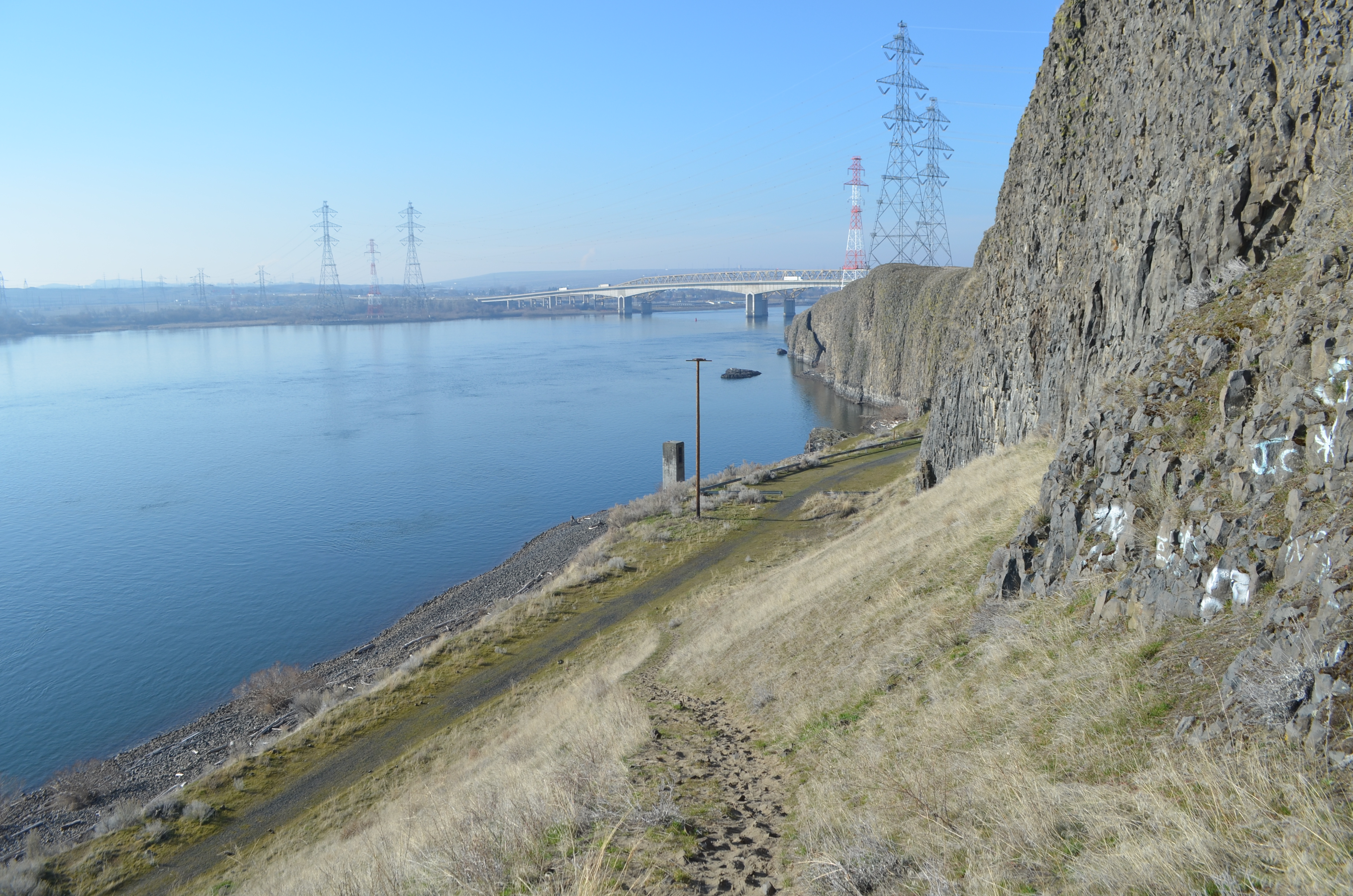 The climb continues and soon, you’re looking out over beautiful vistas of the Columbia River with the I-82 bridges nearby. As you continue, you’ll look over towering basalt cliffs that go down into the water.