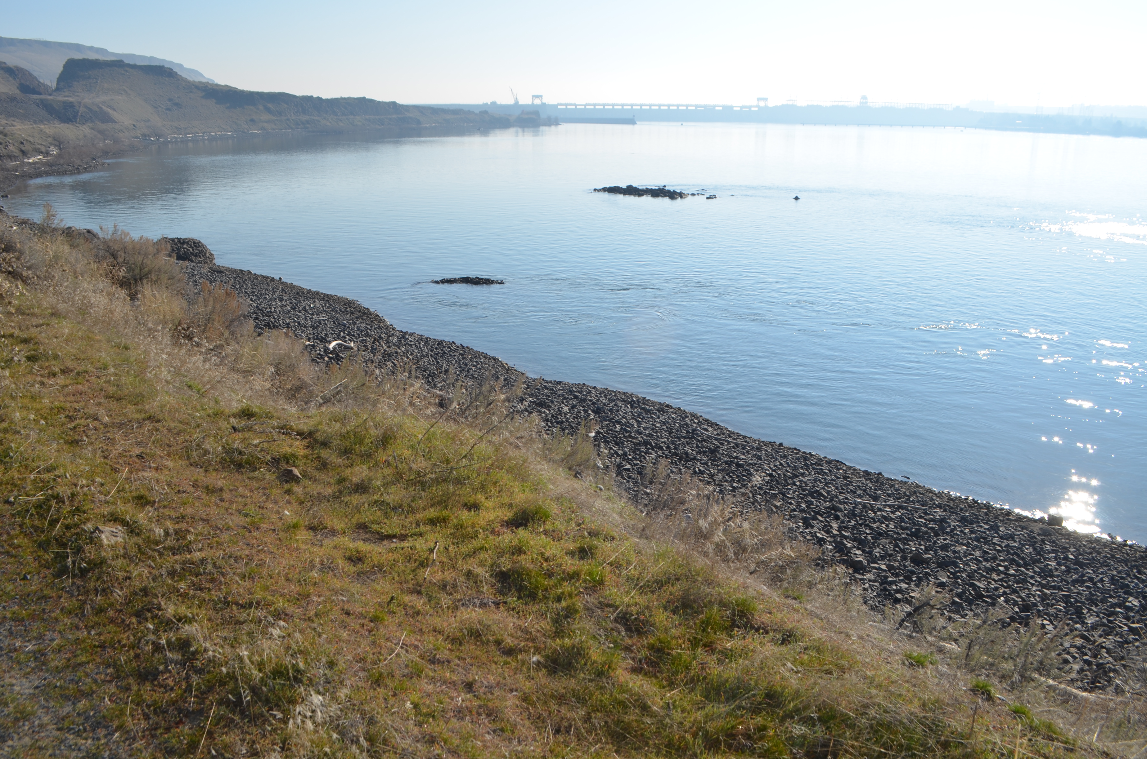 There is lots of driftwood along the rocky shore and you will probably see some fishermen in their boats below the dam.