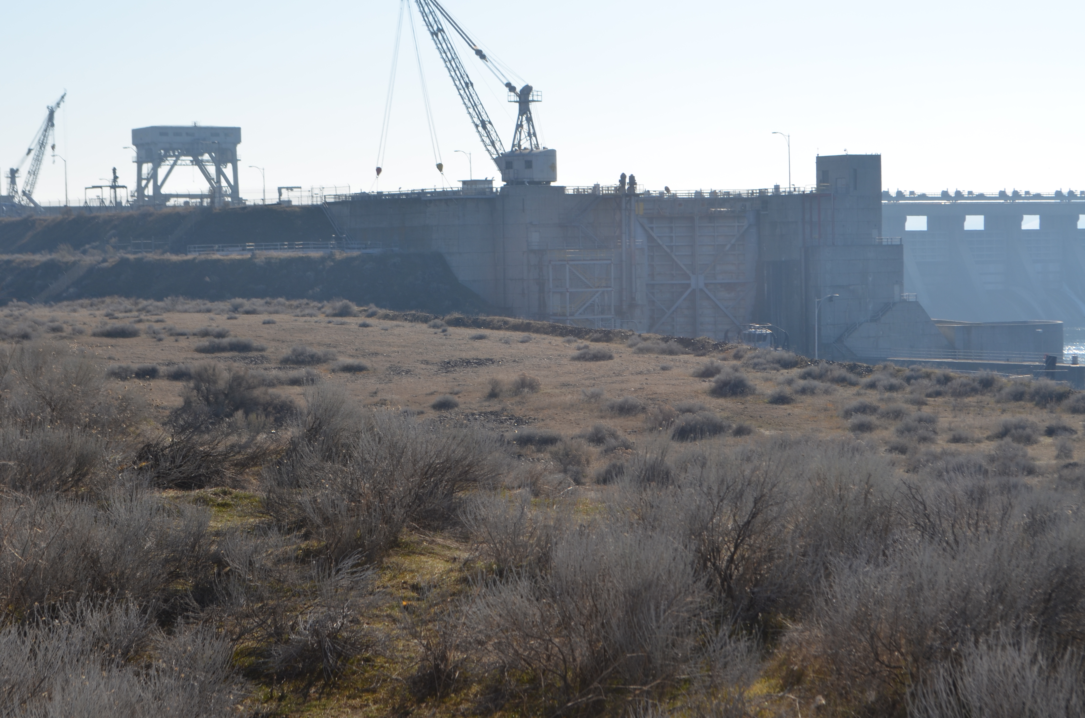 As you descend down along the dike which is along the river, you continue hiking toward McNary Dam. You have some great views of the dam as you hike along the mostly flat trail.