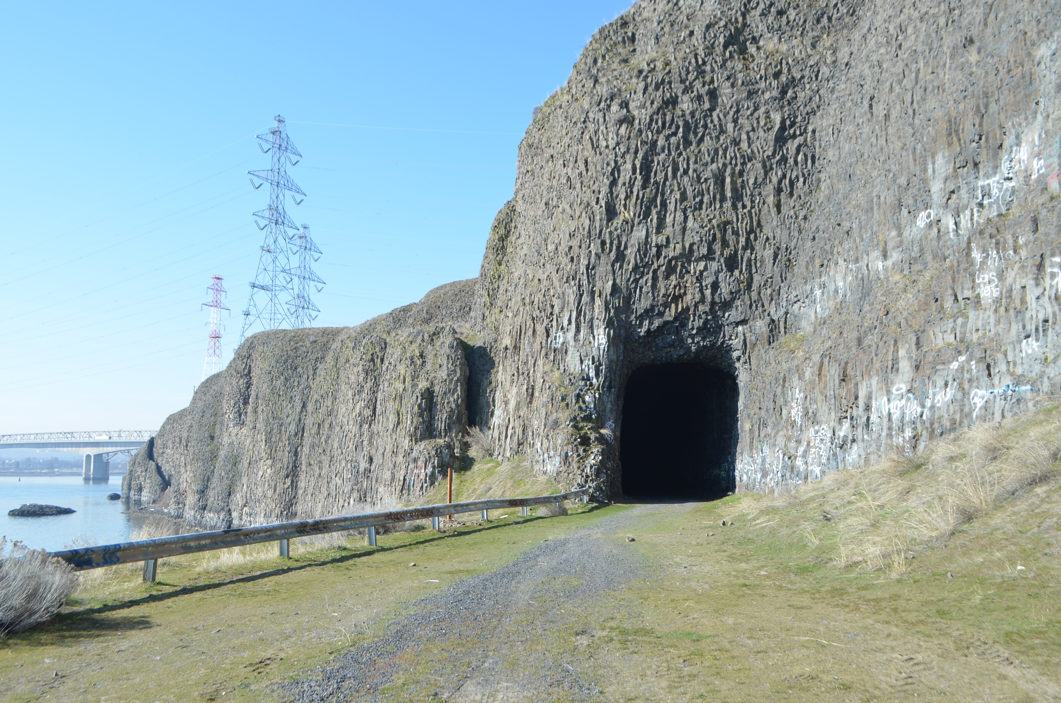 This is a beautiful hike with moderate difficulty, mainly because of the climb up the basalt incline and down the narrow trail along with the optional railroad tunnel route.
