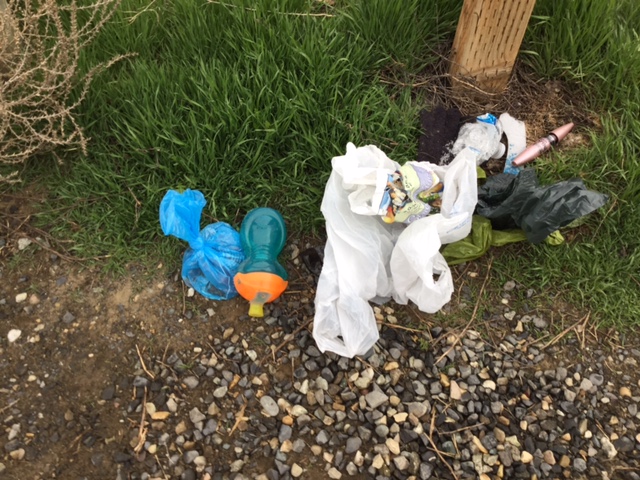 Then, (and it seems like some people are having a problem with this) dispose of it correctly. This means take it to a garbage can, don’t leave it along the trail for some good samaritan to clean up after your dog! I saw several examples of this lack of responsibility on my Badger Mountain experience today. There was a big pile of bags right at the trail head!